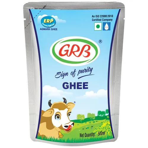 GRB Ghee is clarified butter, which is usually sprinkled over bread, subzis, cooked rice, sweets, etc., to impart an attractive smell. It is used to make a variety of sweets. Provides a wide range of essential nutrients. Improves brain and body functions and boosts immunity. A highly clarified butter that is used traditionally in Indian cuisines. It is considered to be a healthy fat and a powerhouse of nutrients. It adds much-needed taste and health to your diet. Ghee has a great nutritive value and is a must-have to develop bone strength. 1 spoon a day of Ghee keeps you fit & strong in this fast life where we need to be active & energetic always. Ghee can be consumed for better digestion. Ghee stimulates muscle movements, strengthens the sense organ, nourishes the skin, and improves complexion. Perfect for everyday consumption and helps you stay active and provides vitality. It is considered to have healthy fats and makes the food delicious and drool-worthy.